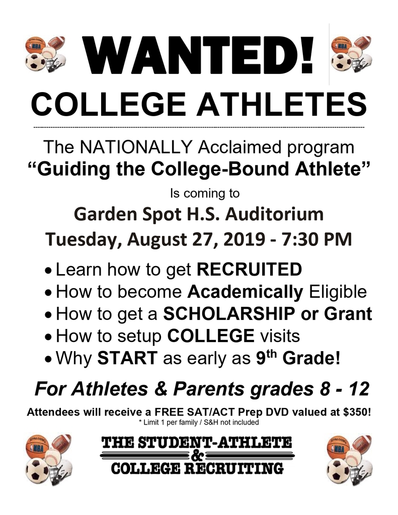 Attention Class of 2020!! College Board has a new scholarship for seniors. Step 1 must be completed by July 31st. If completed, you have the chance to earn a $1,000 scholarship! Click on this link: www.cb.org/opportunity to sign up. If you do not have a College Board account, please sign up today at www.collegeboard.org. You have the chance to be entered into 6 different scholarships throughout the 19-20 school year as you complete the 6 steps. If all 6 steps are completed, you have the opportunity to earn a $40,000 scholarship!! Miss Hershey will give you more information on Steps 2-6 when school starts. Email Miss Hershey with questions.