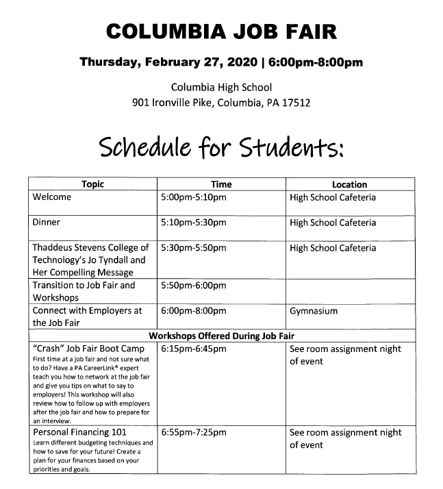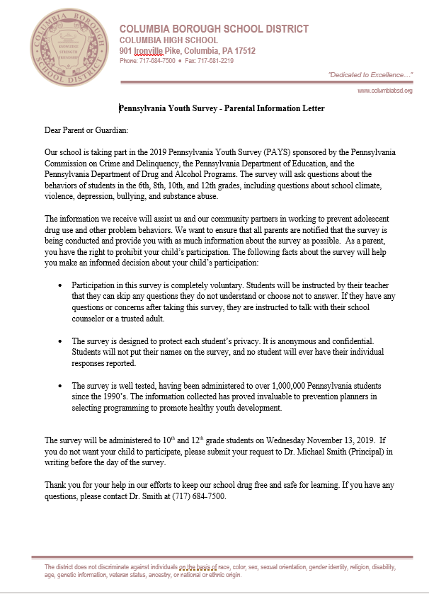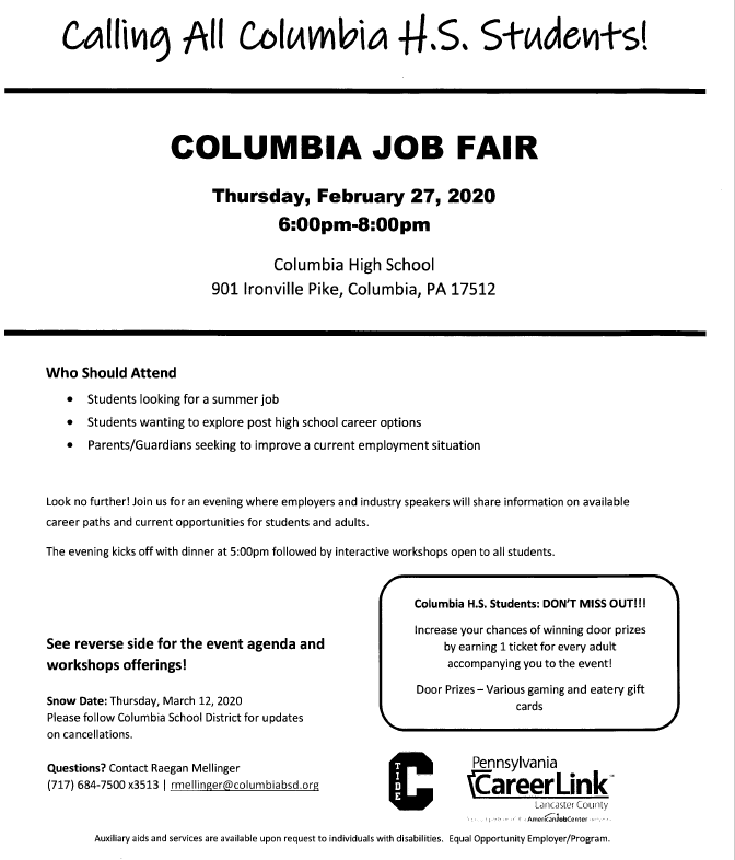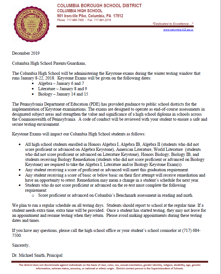 Information will be discussed such as attendance at CTC, which schedule to follow for delays, early dismissals, and days off, Keystone testing information, which events CTC students are invited to attend at Columbia High School, the last day of school for CTC students, and more.