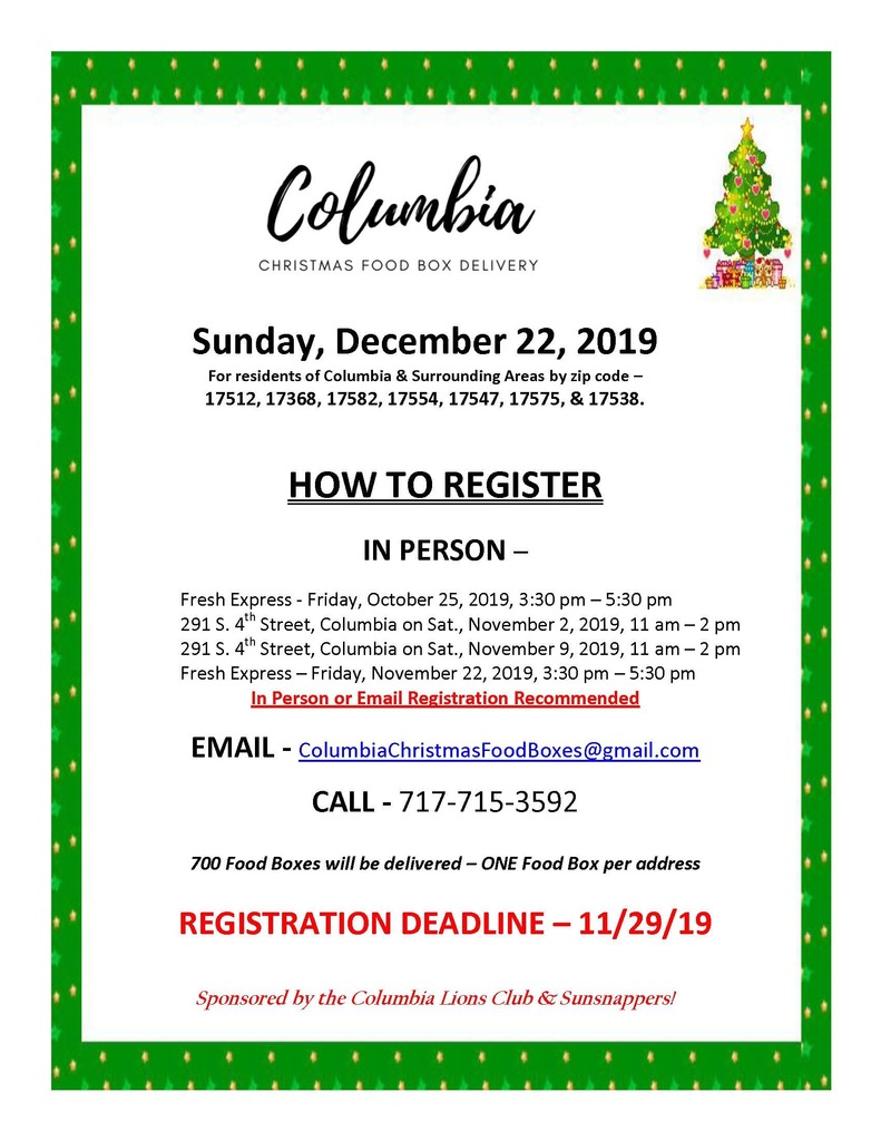 Friday: Fresh Express, Columbia High School, please see https://www.columbiabsd.org/article/249222?org=cbsd for more details.