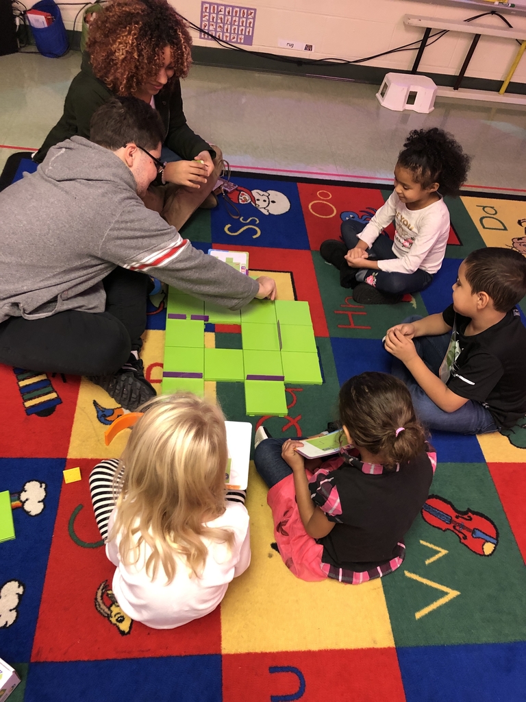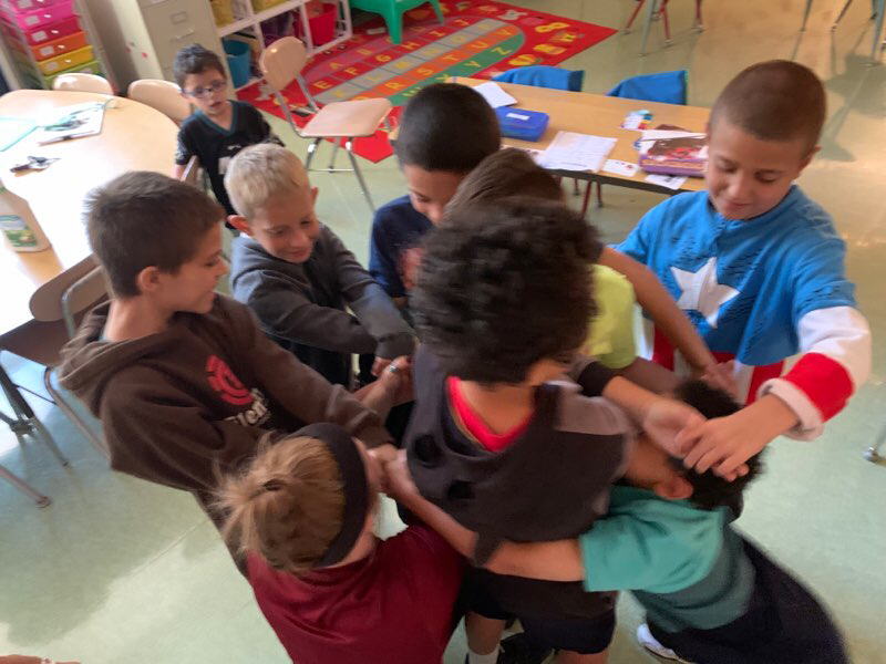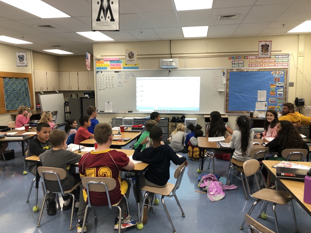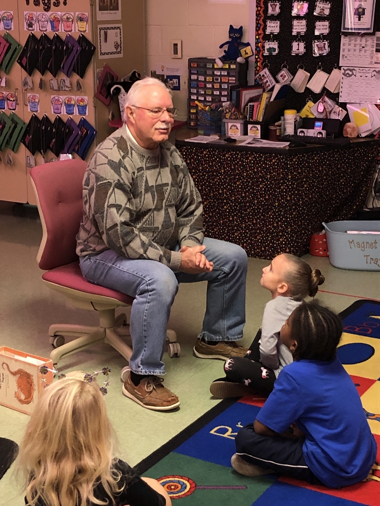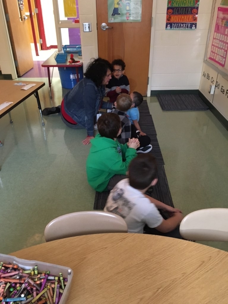 Mr.Kernisky visits kindergarten classes to work in listening skills and sounds.