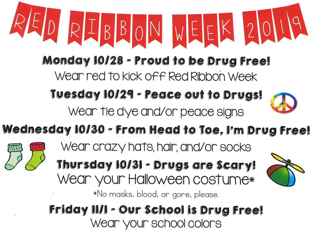 Our School is Drug Free! Wear Your School Colors on Friday (11/1)! Let's finish Red Ribbon Week out strong!
